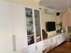 I am about to renovate and extend. My living/dining room will be 7.85m x 4.9m. This is the only storage area that I will have. The room will be painted white with hardwood floor. The furniture is Danish style. I want a wall unit to run the length of the wall. How do I have storage, be able to display family photos and mementos etc whilst making the wall unit a design feature but not dominating the room? Am I hoping for too much? I am looking for a modern/contemporary feel.