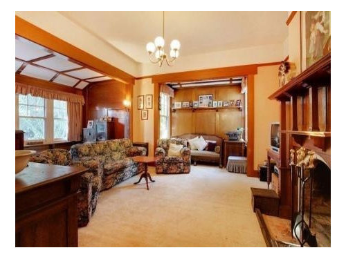 Comments (10)I actually think you are on the right track with your colour scheme of browns and blues - see the photo I've attached that has a 'spa and gold' colour theme (found on 'howtodecorate.com') your lamp would tie in with this colour theme, and your sofa is 'gold'. This colour scheme looks elegant but also relaxed and I think would suit the style of your house. Would you consider painting your wooden panelling a pale blue? This would add the weight to the lower half of the room that Sian mentioned and add subtle colour. From what I can tell from the photos, it should work with the wall colour, although the walls could possibly be a bit lighter. I would move the mirror to above the fireplace (I think perhaps it's too large where it is) and add some artworks to the walls (in gold frames). I agree that a coffee table would be good. I think the rug you already have will work if you just add some some cushions and throws in creams and blues to the sofa to tie it in. If you purchase an arm chair, I would suggest it should be a pale cream or coffee colour as per the picture. The tv unit does look quite dark, it might lighten the room if it was a paler colour - perhaps you could simply cover it with a material slipcover in a light brown fabric which would also hide the contents, that would look more elegant....See MoreLiving room, family room, lounge room: What's the difference?