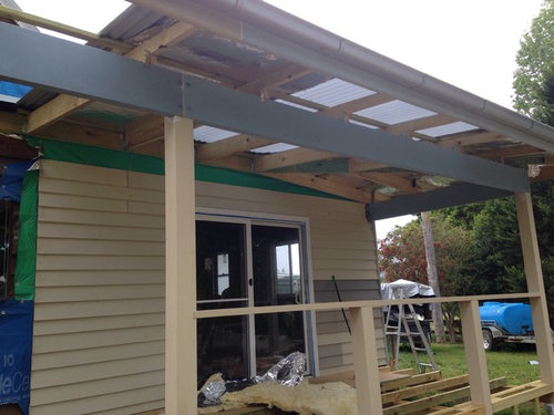 Our verandah roof is predominantly being constructed with zinculume colorbond sheets and we have included some laser lite panels to allow light over our windows and doors.