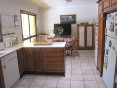 Comments (28)Could you swap the fridge with the wall oven, going by your photo both fridge and Wall Oven would fit side by side. I would definately have the fridge on the cook top wall and not on the other side of the kitchen. I see by the photo that the timber beam could be in the way, I would speak to your plumber who should have a simple solution on ducting the range hood. A simple one built into a special cabinet above the cooktop can recirculate or be ducted outside by either exposed stainless tube for your industrial/country look or have the ducting boxed in, the ducting can be flexable so no problem avoiding beams....See More1980’s ‘spanish’ house needs 2010’s update
