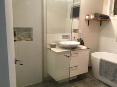 Comments (9)Its more than enough space for laundry. You can have 600x600 space for stackable dryer and washing machine. 450-550 mm laundry tub. and that leaves you with 1.3m of bench space for folding and pull out ironing. Alternatively you can add a 450mm tall cabinet on the other end for mop and vacuum cleaner storage to match the symmetry of the dryer/wm Put a rod between the tall cabinets and you can hang clothes there for drying when it rains. Its very handy for steaming the clothes as well....See MoreI need help with my ensuite & bathroom design, it's a tricky one!