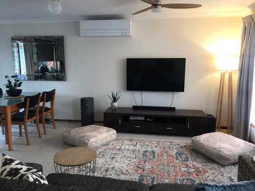 Hi all, I purchased a new sideboard today and would love your thoughts if this decor suits (should I put a black round mirror or go for a large art work or keep the line drawing or change what I have on sideboard etc? The other pics are my lounge room & dining. Also, should I keep the low line tv unit or try and get one similar to the sideboard?