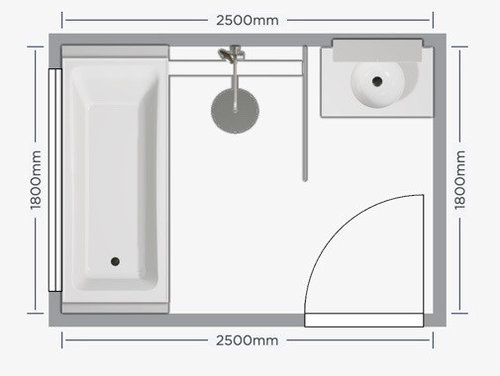 Below I drew up - a 715mm bath, 900mmx900mm shower area with a 750mm vanity.