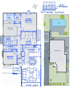 Comments (9)much as i love an extension with such an unusual tiled roof, a resident builder and no kids my first idea would be to focus on reducing any mortgage and doing a mostly DIY renovation within the existing floorplan with enough space to include three bedrooms, two living areas, eat in kitchen, inside laundry and powder room, add a carport to allow more storage in the old garage and enclose the outdoor laundry to create a generous covered entertaining area, garden storage and extra toilet...the existing bathroom could be improved to equal or exceed a standard ensuite without needing to be enlarged and if/when you need more space and/or the roof needs major work then think about removing the old garage and laundry and reconfigure inside to allow for extra bedrooms with an extension to include a new family living area, outdoor entertaining and a better garage with more storage hopefully the slope of the land can be incorporated into a slab on ground floor although a step up across the extension might be necessary and ceiling and roof height variations may need to be accommodated by having the new rear entry, laundry and pantry built as a link to separate the old and new roofs (and maybe avoid needing to change the old roof?)...See More- 2 years ago