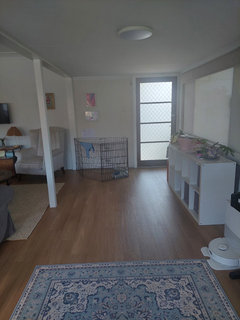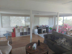 We have a long and narrow sunroom that acts as a kids' playroom. My kids mostly use it for gymnastics, playing barbies on the floor, and occasionally building lego. Because it's next to our living area, we don't need any seating in it, and we currently have a storage unit and a piano sitting along the long wall. I plan on replacing the storage unit with a sideboard or something that looks a bit nicer), but my concern is with the layout of the furniture. Everything just kind of looks like it's randomly floating in place with no anchor, and I think it looks a little odd and like we just dropped furniture wherever, with no thought (which is basically what happened!).