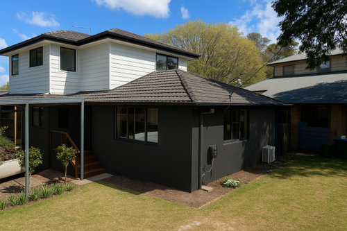 Comments (2)why not colour match the whole house..it looks like the extension has the same gable decoration as the front of the house and all white with white windows or white with black trim and windows would both be timeless and your floorplan looks excellent and your proposed kitchen with the splashback window is gorgeous but in such a generous room the kitchen island looks too close to the sink cabinets...try a distance of at least 1200mm for a more comfortable work space...See MoreDoes anyone have Dune colorbond on their roof?