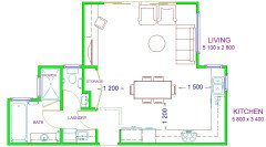 • large kitchen with more bench space utilizing the 'dead' space in the middle