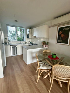 Comments (4)Hi Suzy, the answer could be both yes it could be and no it may not be. The issue here is you're dealing with two existing "whites" in that you have existing rooms painted in the USA antique and the kitchen which you describe as a vivid white. It depends upon many things. What I can say is that colour is perceived relative to immediate context, elements and light conditions. The same paint colour can vary dramatically from room to room, from wall to wall. Check out this link from Resene that demonstrates how colour works with adjacent colours and our eyes are "tricked"one way or the other http://www.resene.com.au/samecolour.htm . This can be used to our advantage but we need to understand and be aware of what's going on. Sometimes it makes sense to follow suit with existing colour, but sometimes a subtle adjustment of tint is required to balance better against a certain element that may be a more dominant aspect in the specific space. This is ultimately getting into the nitty gritty of interior design and the balancing all elements. The beauty about paint is that you can fine tune it to perfection and you can blend/adjust across spaces. What you need to to work it is what option is the option that is the LEAST noticeable. The question is here if you go Antique White, will it throw too much yellow if it's juxtaposed with the vivid white of the kitchen? And if so is there opportunity to change the colour somewhere without making it obvious. Are you using different colours for the trim for example? Could you make a statement/change feature for the kitchen/living space and do something completely different such as a soft grey wall that will set off the kitchen but the grey will work well with both the antique white and the vivid white of the kitchen? Start with a sample of the antique white and put it up against the kitchen and see how it sits. If it looks OK run with that, if it's obvious/looks yellowish, then you may need to consider an alternative strategy. If all else fails it may pay to seek some professional colour consultation. Hope this helps. Cheers PD :)...See More- last month