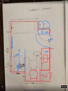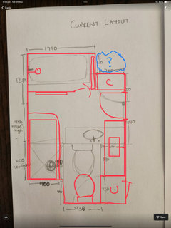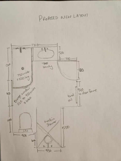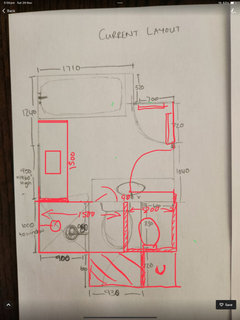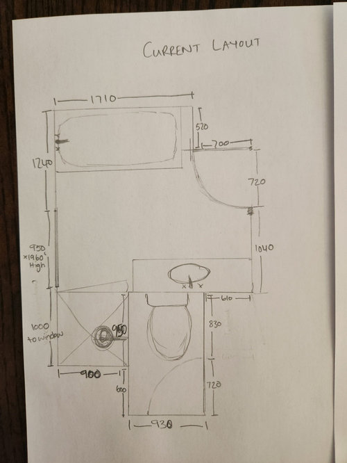 Looking for layout ideas for our bathroom. Currently toilet is separate from the bathroom, we have another powder room in the house so feel it would be better to put the toilet in the bathroom, have come up with a layout but not sure if its the best design, window will have to be bricked up slightly in height to accommodate bath, would the vanity be better placed where the towel rail is and keep the bath in the current position? Don't love how the bath sticks out into the door space in current position, although bath im looking at has a rounded corner so it would be softer than the current square in built one. Would love to get some feedback :)