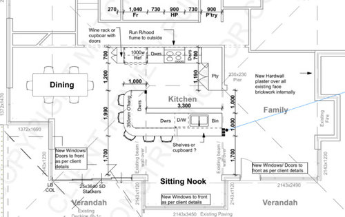 Comments (21)Hi, I'm really enjoying your plans, nice job. I have a few thought I wanted to add :) if your still looking for feedback. Just some elements I think would really work. The garage opens to then entry. I think it would work really well opening through the laundry area. I'd love one like that in my house, as really your just lugging groceries etc through the house to the kitchen. Freeing up the entry to make a nice uncluttered space. You've got heaps of space in there, that you could incorporate a mud room / laundry and still have the small powder room. Basically flip the rooms on their sides. Your kitchen is wide but not a lot of workable space. I don't think you can actually fit that little round table in there. I personally would be considering a butlers pantry or a large regular pantry in some of your space. How about against the laundry wall? Then you could maybe have the fridge and oven in a wall of cabinets on the same wall facing the open kitchen. Then add a long central island. No cabinets against the side walls the island could hold a lot of casual seating if you wanted. Front entry. I personally find a hallway nice, so you don't have the lounge room becoming thoroughfare. How about some double cavity sliders or something similar? Then you have the openness your after but still get the division of space. If your only using a formal dining table occasionally, that might look good placed in the far end part of the original lounge room. You could open the wall up there to the rumpus like you show on one of your plans, it would be a nice flow through. I think doors here would be handy too. You could add a lovely pendant over the table and there is the windows there already, could look nice. Rumpus area. I think just add a big modular lounge and a telly on the far wall, your bi folds and you've got a really comfortable space right there. If you go for a kitchen island, and can't imagine having many meals at the taller height table, you can drop part of it to regular height for dining. Hope that's clear, good luck with it all!...See MoreHelp with kitchen layout...kitchen too darn BIG!