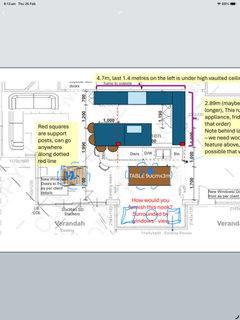 Comments (6)Hello again- I have run up a quick design for you. Not perfect as to dimensions and placement of the troublesome beam however, I've made the island longer so that the kitchen looks more like a kitchen and placed TV behind the middlle hinged doors so that the TV is hung on the wall not sitting on the counter and when not being viewed, it can be hidden behind the doors. The doors have a folding mechanism a bit like a garage door.I hope this has been helpful to you decision making....See MoreLayout Help - Which layout would you choose?