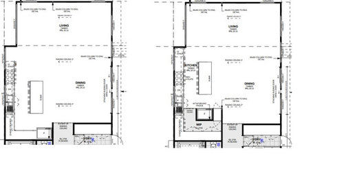 Aside from the pantry, you need to do a mock up of furniture. You’re paying to build a lot of dining space that you may not use and an awkward to furnish living area.