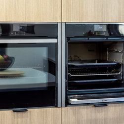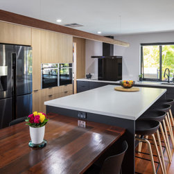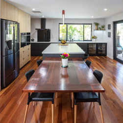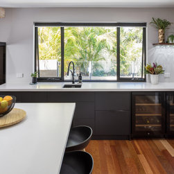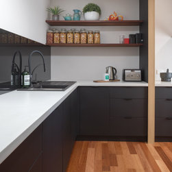 Contemporary black & white kitchen, walk-in pantry and laundry