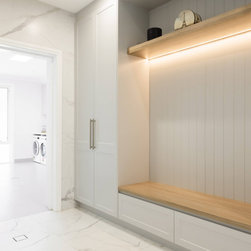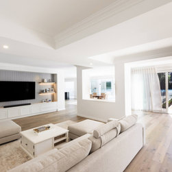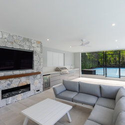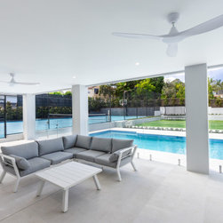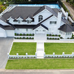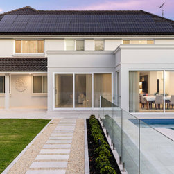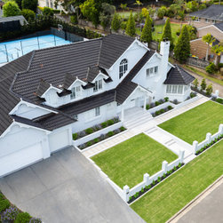 Sharp, refined lines throughout the design take inspiration from the structured geometry of the tennis court, a defining feature of the expansive rear landscape. These lines create a sense of flow and connection, seamlessly integrating the home with its surroundings.