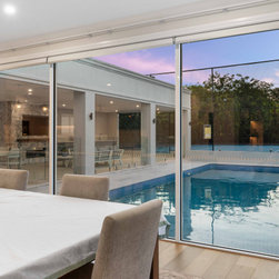 Inside, the home delivers a smooth 360-degree flow, with living spaces thoughtfully wrapping around the pool. Expansive sliding doors open to the backyard, allowing natural light to flood the interior and creating a seamless blend between indoor and outdoor spaces.