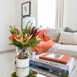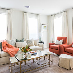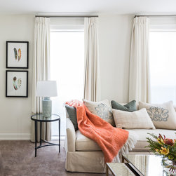 This family purchased a 1990's Neo Georgian home which was yellow and cream, inside and out. The client wanted to incorporate warm colours based on a Feng Shui consultant, whilst still freshening up the space. Hence the neutral palette with colour accents of rust, tan and orange.