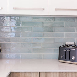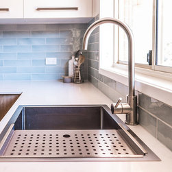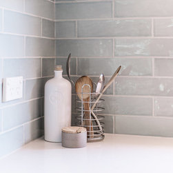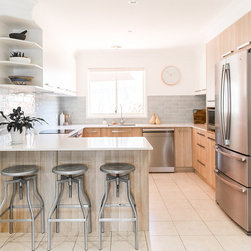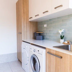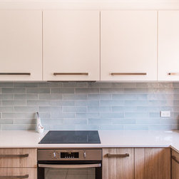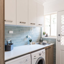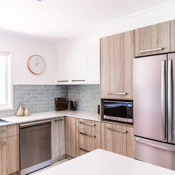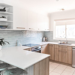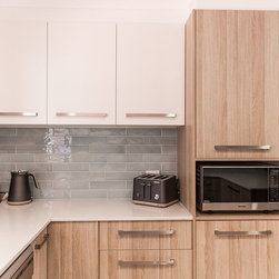 The finished design features maximum bench space and sufficient overhead cabinetry gives plenty of storage whilst not overbearing on it's fresh, contemporary style.