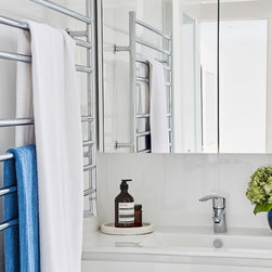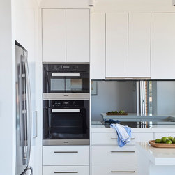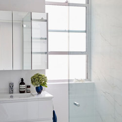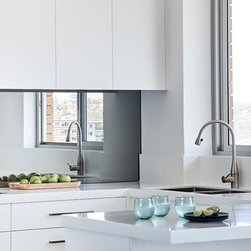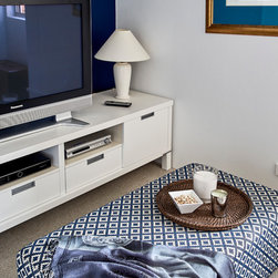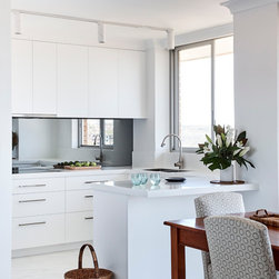 1970's apartment was completely gutted to create a contemporary home in blue and white