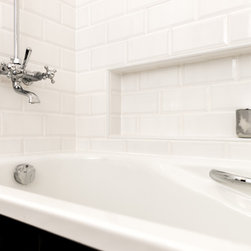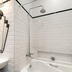 This conversion and reconfiguration created an ultra compact bathroom. The Art Deco theme is true to the home’s heritage and style. A multitude of small details combine to create a complete solution.