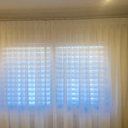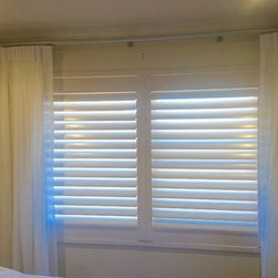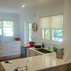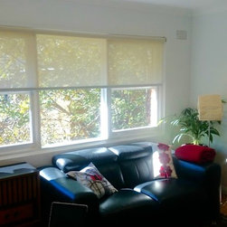 Part of the renovation of this older style apartment included updating the window coverings to something more modern and contemporary. The plantation shutters in the bedroom allows for airflow, white sheer curtains over the top provide softness to the master bedroom to melt in with the overall clean and contemporary beach style of the apartment. Sunscreen roller blinds in the living areas provided great light diffusion whilst still maintaining a view to the beyond together with day time privacy.