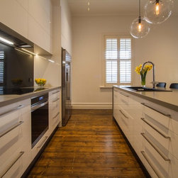 Russel and Suzy were interested in changing the orientation of their kitchen to better suit their lifestyle. With such a small space, maximising storage was a high priority and to contrast their period style home, our clients wanted a sleek, modern kitchen with clean and simple lines. Our designer, Michael Simpson, was able to create something classy and sophisticated with ample storage.