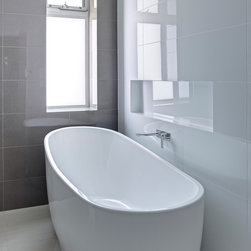 A clever idea from the designer has made the most of every centimetre available in this bathroom. A false-framed wall was created to house the toilet’s in-wall cistern which made it possible to include a large bath niche for the freestanding bath. A walk-in shower, new layout and expert choice in products and materials means the bathroom is now light, bright, airy and open.
