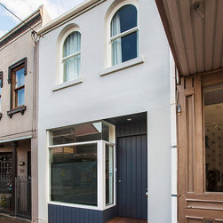 This part of Mullens Street had some intact heritage fabric adjacent to the property, and a confident yet sensitive design approach meant we were able to replace the façade with a contemporary shopfront insertion and a simple yet contemporary new façade to the rear.