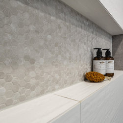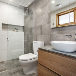 Layout is key in getting the most out of your bathroom renovation. Earthy tones with textured tiles give a luxury feel, contrasted by the beautiful timber vanity and stone top. Functional and Contemporary with classic finishes