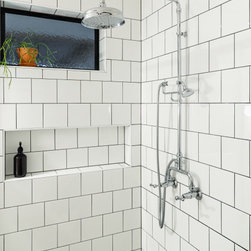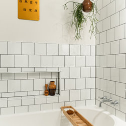 Two tiny bathrooms have been opened up into one for this Eltham family, making room for a generous open shower, storage and flow.