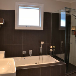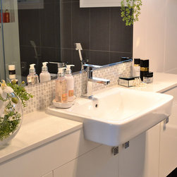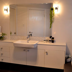 We were engaged to come up with a design that was both masculine and feminine for the couple. This was achieved by separating the tile design, selecting lighting, tapware, fixtures & fittings that also complimented their individual tastes.