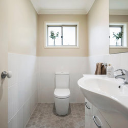 A simple and soothing colour palette was the perfect choice for this small powder room.