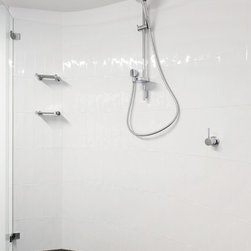 Curved walls require creative solutions, and this was a great way to deal with the complex space available. By using subway tiles and orienting them vertically, the tiler was able to achieve a neat curved finish. Additionally, using subways is much more economical than other options, such as mosaics, which cost much more to both supply and lay.