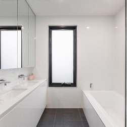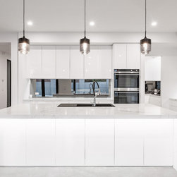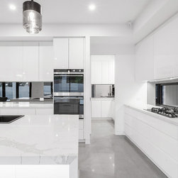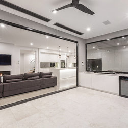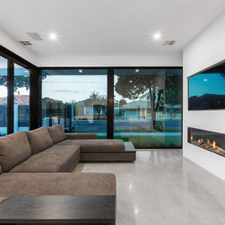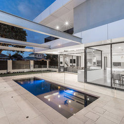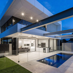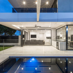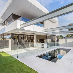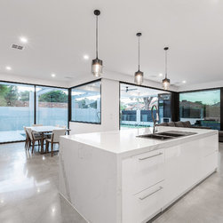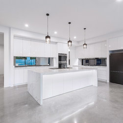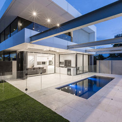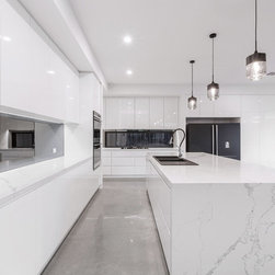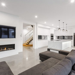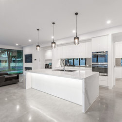 A stone's throw from the bay, this modern custom home integrates indoor living and outdoor entertaining for a new, spacious and luxurious home with beautiful modern finishes like burnished polished concrete flooring, white marble stone surfaces and Alucobond exterior cladding.