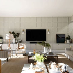 Our Bayview Residence is the Woods & Warner version of the Classic Australian Outfitter Home. We have adopted classic Australian architectural elements to ensure our theme is present throughout the home. Tremendous high ceilings, richly detailed architraves, wainscotting and skirting boards, open floor plans, natural materials and neutral colours are just a few examples highlighting these details. Set on Sydney’s Northern Beaches with views onto Pittwater this home has a distinct and contemporary layout and very much is the entertainer’s hub. We have incorporated key features such as a Pool, Tennis Court, Sauna Room, Golf Simulator Space and Gym. These are balanced with large scale lounge and living spaces which builds to the character of the home. Clear design selections were considered to ensure the spaces felt connected despite the scale of the home. Limestone floors mixed with American Oak timbers and luxurious tapware finishes provide a tranquil and elegant approach to the home. Each space prides itself on its own personality, largely created through the use of Autumn and Spring colour choices, bold at times yet given the picturesque landscape backdrop each space nestles easily into the design. There is a harmony between all the elements however the standout is the joinery and wall detailing throughout. Each zone is elevated by the abundance of unique and well thought out design solutions. This home creates an environment that is both functional and inviting, the design selections are simple and require little maintenance, yet the design footprint is remarkable for a growing family to entertain and unwind.