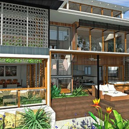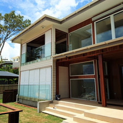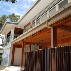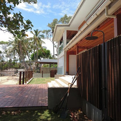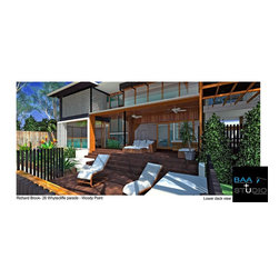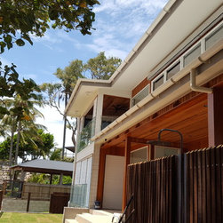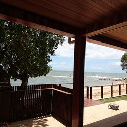 House renovation at Woodypoint Brisbane / Queenslander. Located on the beach this existing house has been converted into a fantastic tropical beach house resort for the clients to relax and enjoy the beautiful location.