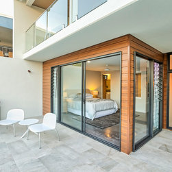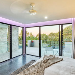 Three stories of opulent living with the arrangement of indoor elements allowing the home to maximise views from all living spaces and bedrooms. The upper floors internal and external spaces blend seamlessly and appear to float to the blue horizon and beyond.