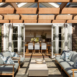 Indoor - outdoor connected living. Patio area with natural crazy pavers leading into beautiful kitchen