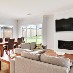 A gorgeous corner block design with wrap around verandah and generous covered alfresco area. This family home is designed with 4 bedrooms and a kids play room located off the main family room. A beautiful layout with many living areas throughout so everyone can have their own space.