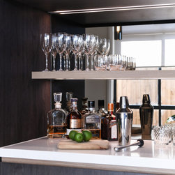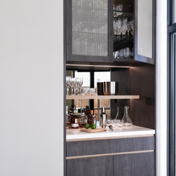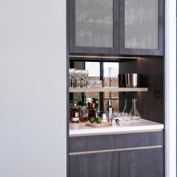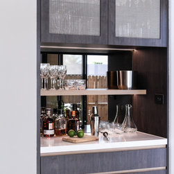 Bespoke Bar Area | Wire Mesh Cabinetry | Hidden Pantry | Grey Marble Bathroom