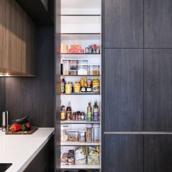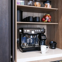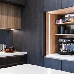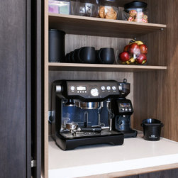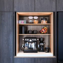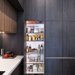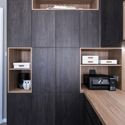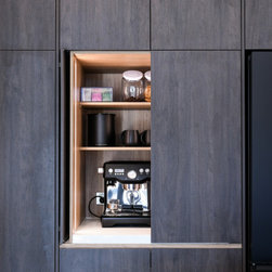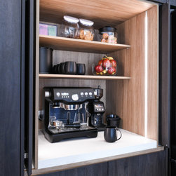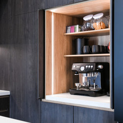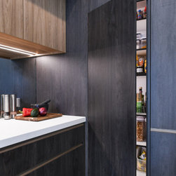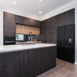 Our team attentively listened to both our clients and their builder, resulting in the creation of stunning and functional living spaces. In the kitchen, the client opted for Perugian Walnut and Prime Oak Woodmatt joinery, which exudes elegance and sophistication. To complement this, matte black appliances were seamlessly integrated into the design. The kitchen also features an appliance pantry with bifold pocket doors and tasteful LED lighting, adding convenience and a touch of luxury to the space.