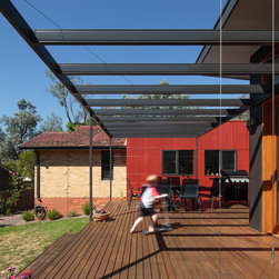 Our O’Connor clients had a keen eye for the opportunities this home had to offer; the existing home was on a large block, with a beautiful outlook on to the twisting branches of mature silver-leaf stringybarks that line the street. They wanted to retain the existing home for its character, but create a dynamic complimentary extension in to the back yard.