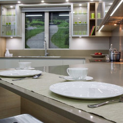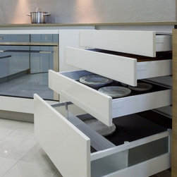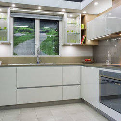 Our Blackburn showroom is home to 8 sophisticated, practical and innovative kitchens designed by a number of our top kitchen designers. The kitchen we are featuring this week was designed by John Crooks and is a slick way of achieving the handle-less kitchen concept.