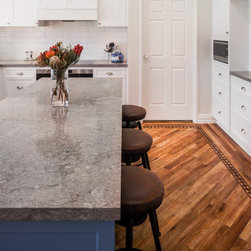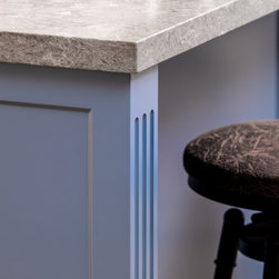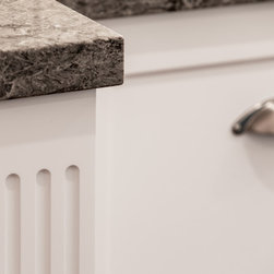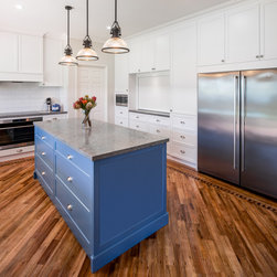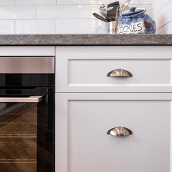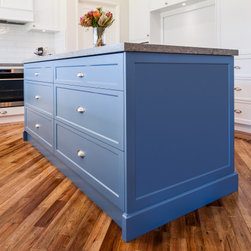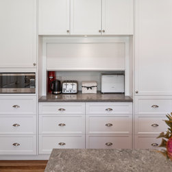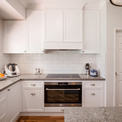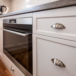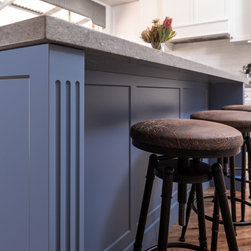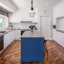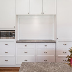 Shaker doors to match Dulux White on White and Wattyl Space Music on the island.