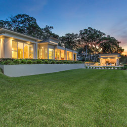 The garden acts as an extension of the home, it takes advantage of the natural grade changes to offer a number of outdoor rooms whilst providing a strong connection to the site. The external areas are subtly divided into pockets with the expanse of the lawn acting as a seamless connection. The entrance is formal, with strong visual planting lines directing guests to the front entrance, whereas the more informal aspect facing the bushland view lends itself well to the pool zone and family cabana area.