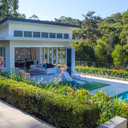 Once a clear block of land being used for a private light aircraft runway, this transformed Modern Contemporary retreat is home to a formal, yet relaxed garden that offers extensive views of the amazing Blue Mountain landscape. Outhouse design was engaged to work in collaboration with renowned architect Daniel Briffa of Adan Creative Design to ensure there was a balance between the external and internal spaces and so framing strong clean vistas from each of the internal rooms.