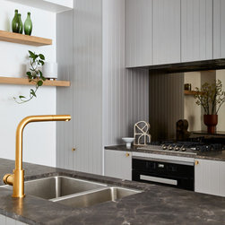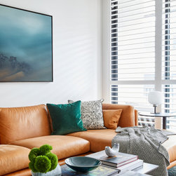 Our client engaged us to decorate and modernise his apartment and create a continuity of style and a common design language throughout his home. He wanted an airy, beach feel without being clichéd coastal. Our approach was to use a neutral base of light-oak timber floors and white walls as the backdrop on which we added lashes of texture, colour and warmth from the moment you step through the door to the kitchen, living room and bedrooms.