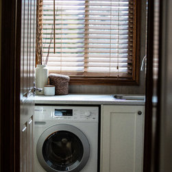 Functional laundry with clever cabinetry seamlessly integrating with existing kitchen design.