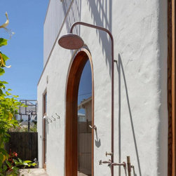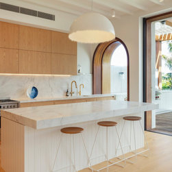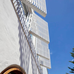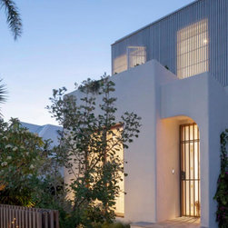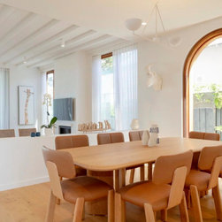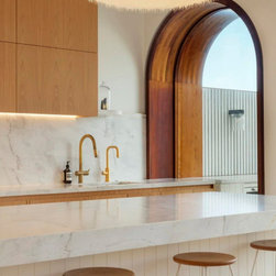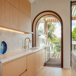 The architectural language introduces a softer, more expressive character. Rounded forms, Mediterranean-inspired render and carefully detailed timber elements refine the existing façade, creating a cohesive balance between the original structure and the new addition.