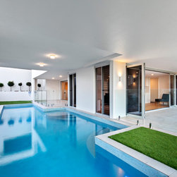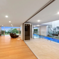 The three storey structure consists of 4 bedrooms, with only the master bedroom and en suite located on the top floor and separate granny flat features of a kitchenette and separate living area located on the lower level of the home. The design also features a lift, wine cellar and a lap pool.