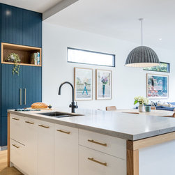 The brief was to add an element of design and plenty of colour to liven up the new extension of this original bungalow home, and to deliver a contemporary and functional space for a busy young family.